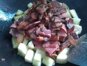 3. 烹饪:将腌制好的腊肉放入锅中,加入适量的清水,大火煮沸后转小火慢炖。待腊肉炖至软烂时,加入切好的童瓜,继续炖煮。